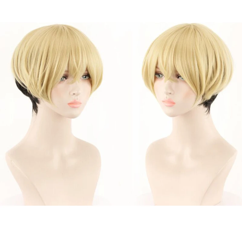 High Quality Anime Tokyo Revengers Chifuyu Matsuno Cosplay Wig Short Blonde Black Heat Resistant Synthetic Hair Wigs Wig Cap